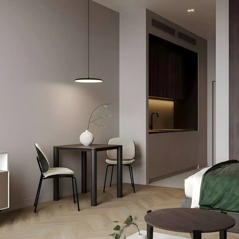 - Open-plan layouts in studios, 1, 1.5, and 2.5-bedroom units