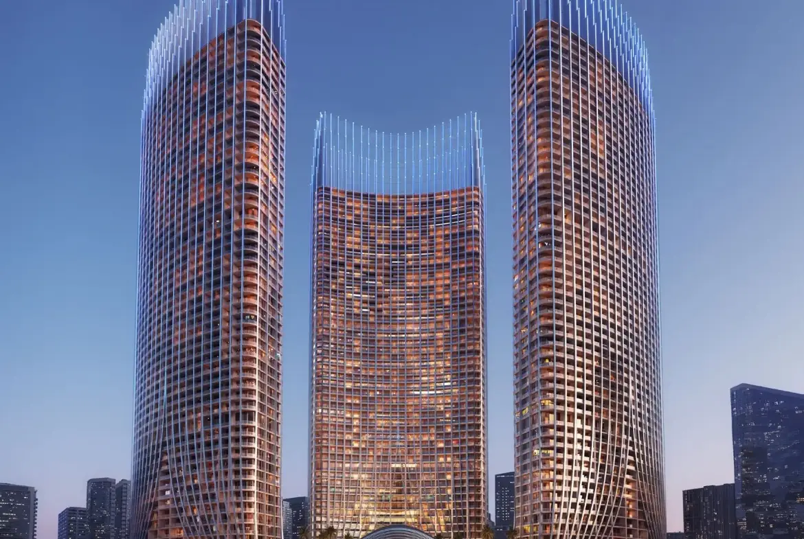 Binghatti Skyrise , located in the iconic Business Bay, Dubai, is a luxury residential and retail development by Binghatti Developers. This project features three striking towers with a unique architectural design and luxurious interiors. The 48-floor complex includes 3,302 residences comprising studios, one-bedroom, two-bedroom, and a limited number of three-bedroom apartments, each thoughtfully crafted for an exceptional urban lifestyle. Its sleek, glass façade and illuminated crown add a distinct touch to Dubai’s skyline.