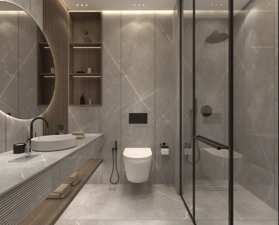 The interiors at Breva by AYS are defined by a strong materials story and a consistent specification across the project. AYS uses international brands and systems already tested in its portfolio, which is a key reassurance for end-users and investors.