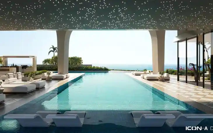 - Rooftop sky lounge with roof bar, cinema, plunge pool, and sunbed lounges