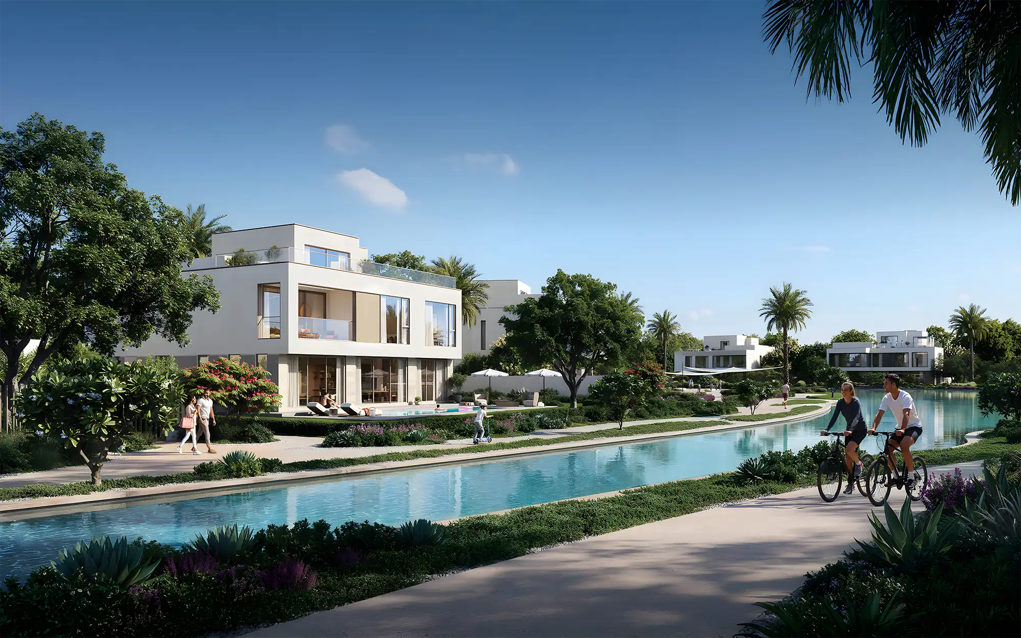The neighbourhood is surrounded by established residential and leisure destinations such as Arabian Ranches and Jumeirah Golf Estates, as well as major shopping and entertainment centres, golf courses, schools, and medical facilities. In addition, the low-density planning of The Oasis and its extensive water and landscape framework create a sense of calm that contrasts with the busier city core, while still keeping residents within comfortable driving distance of central Dubai.