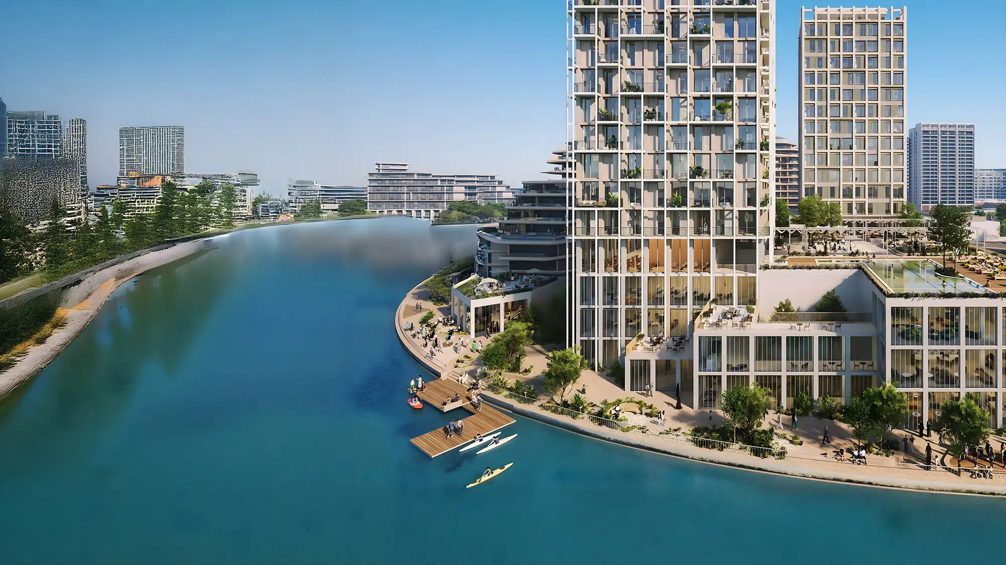- Rooftop lounge and waterfront promenade