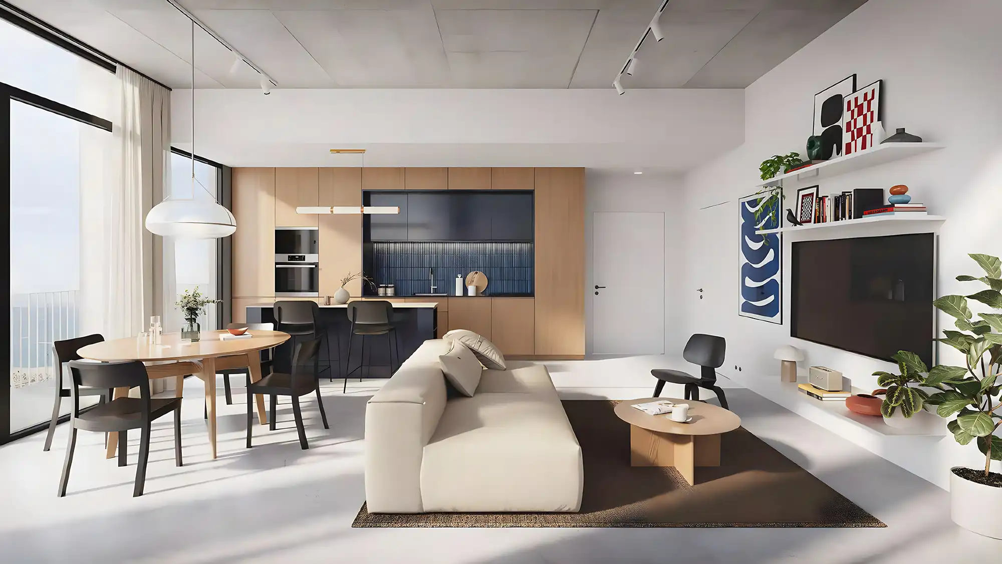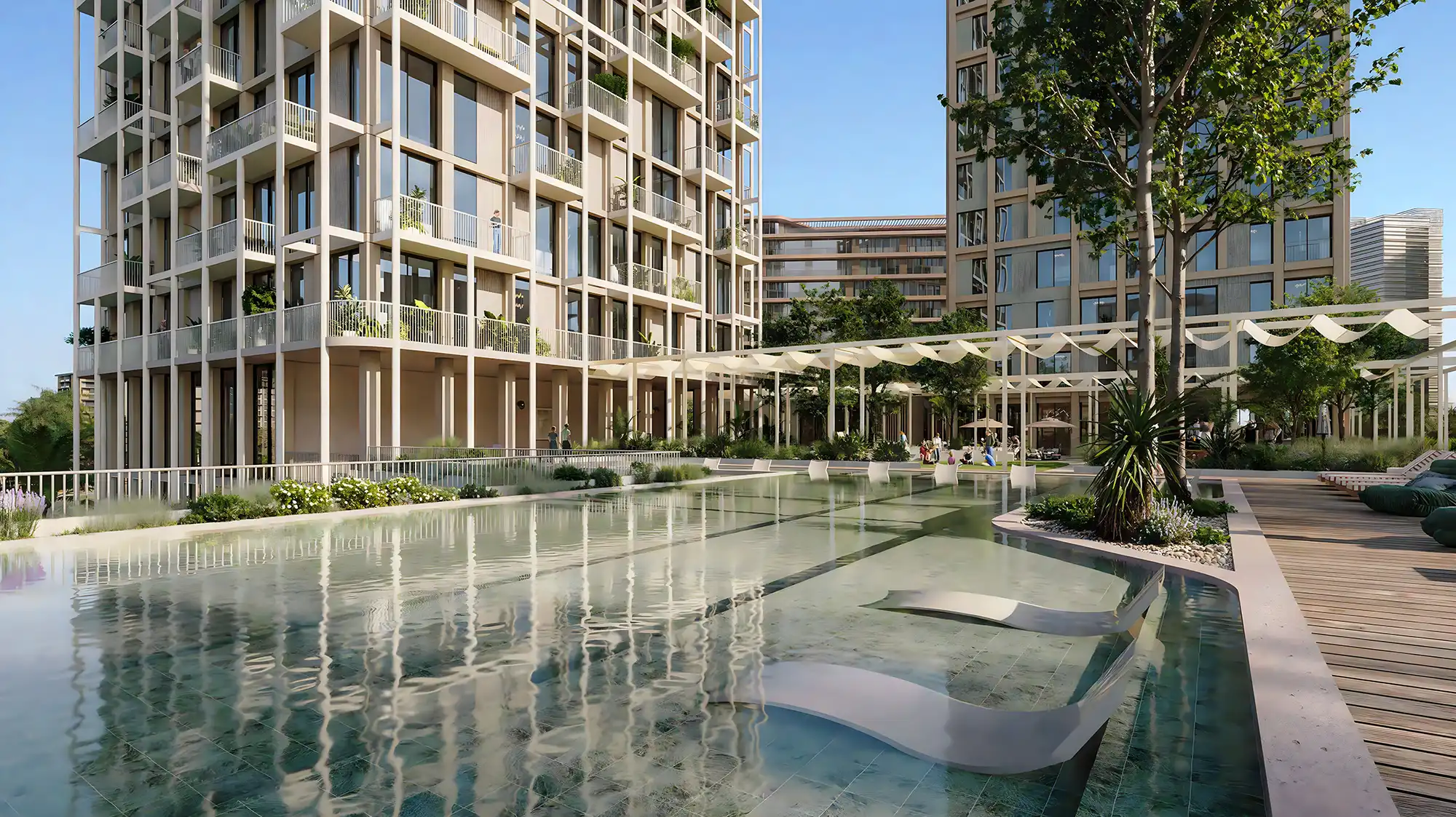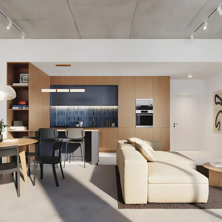 Each apartment is designed as a personal retreat — where coastal minimalism meets urban sophistication. The interiors promote a peaceful rhythm of life, combining craftsmanship and creativity in every detail.