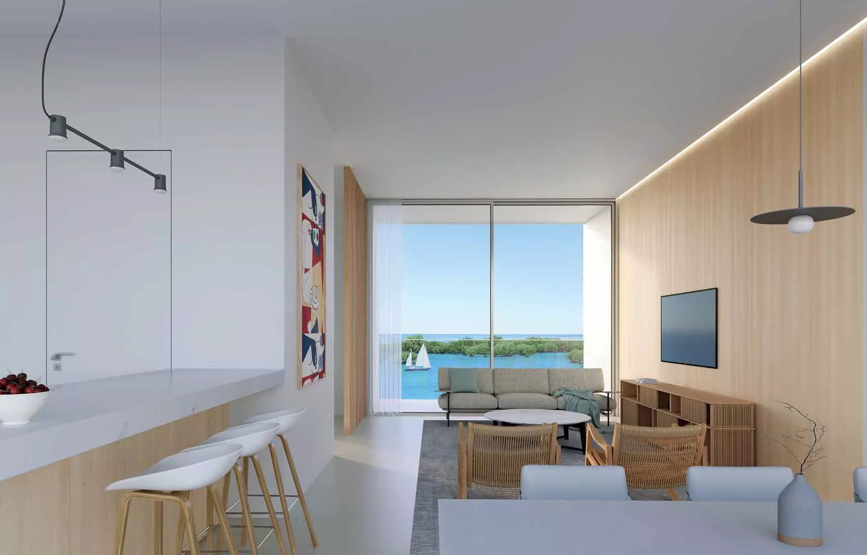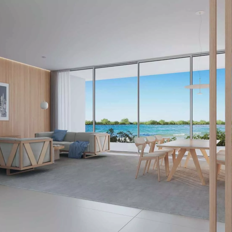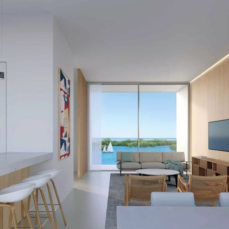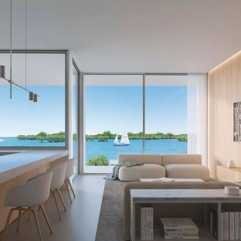 Every apartment is designed to blur the boundary between indoors and outdoors — with expansive balconies and floor-to-ceiling glass that frame the surrounding mangrove and marina landscapes. This connection to nature is at the core of the development’s philosophy.