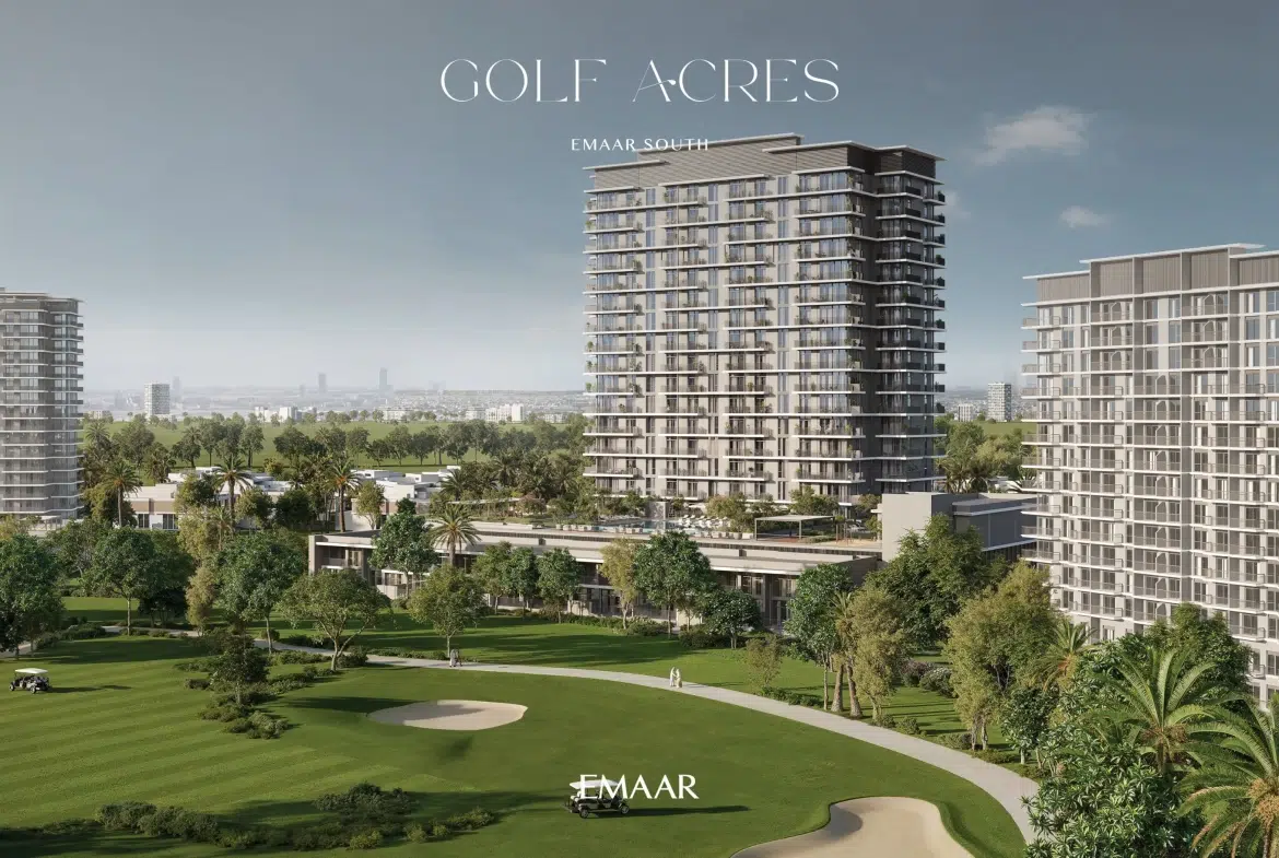 Golf Acres at Emaar South by Emaar Properties. 1-3BR apartments & townhouses starting at AED 1.12M. Golf course views, luxury amenities, and flexible payment plans. Handover 2028.