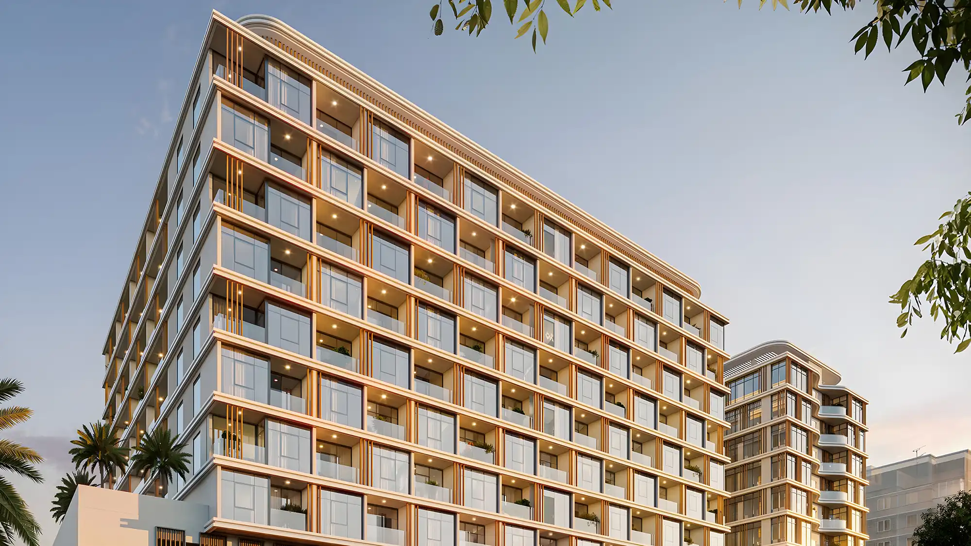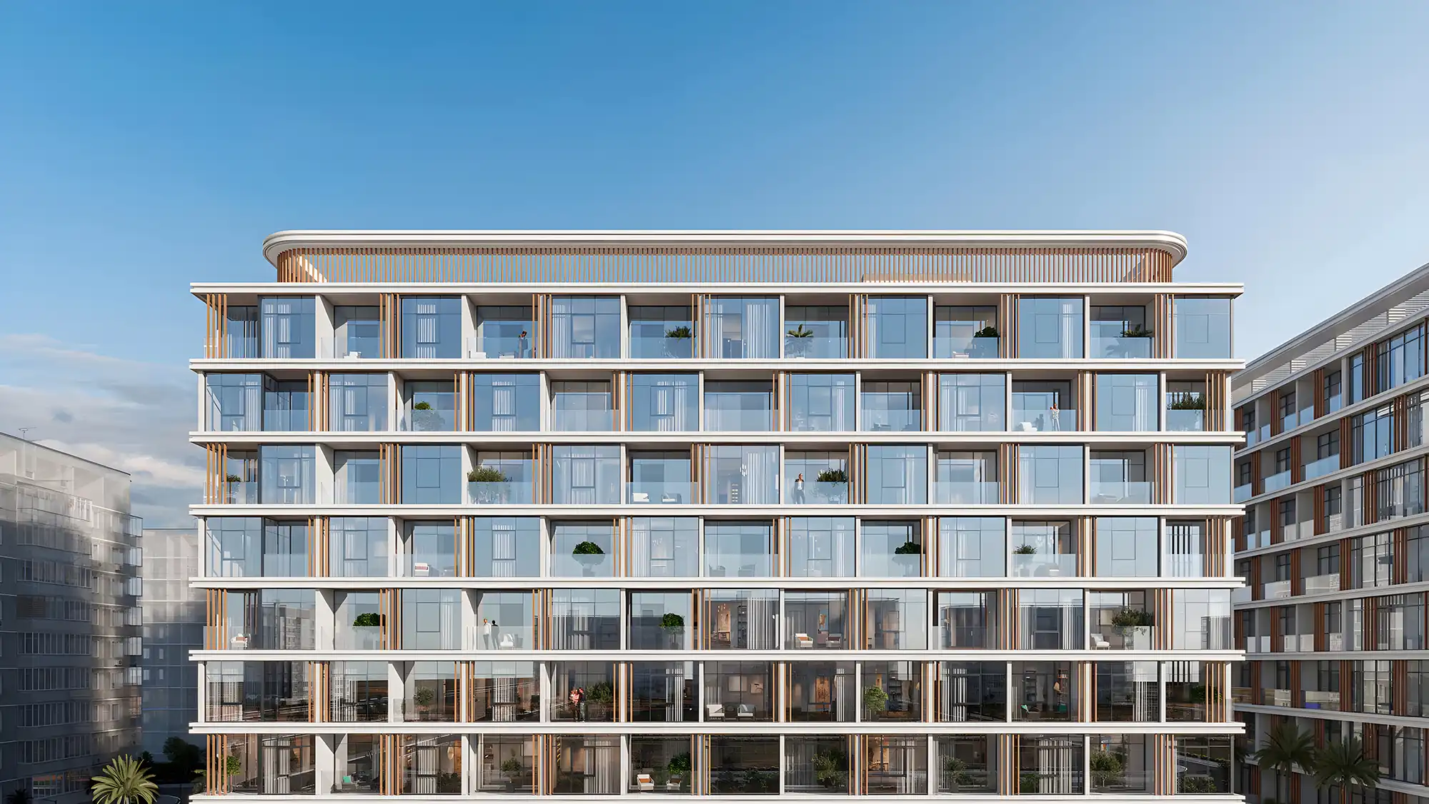 Designed in a classic contemporary style, HOLM One presents clean facade lines, large windows, and a neutral light colour palette. The building consists of a lobby level, two parking floors, eight residential floors, and a landscaped rooftop, with a total of 218 apartments, including 162 studios and 56 one-bedroom units. In addition, the project offers an attractive 5/30/65 interest-free payment plan and a planned handover in Q1 2028, which makes HOLM One at Jumeirah Garden City a compelling option for both UAE residents and international investors looking for a central Dubai property with flexible purchase terms.