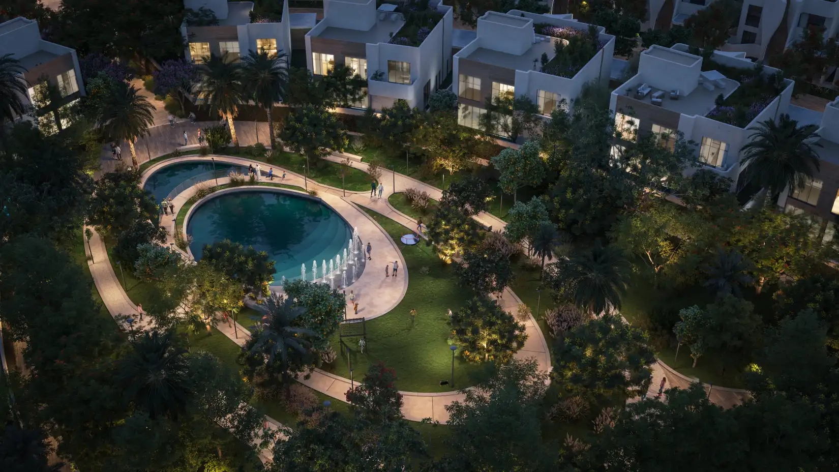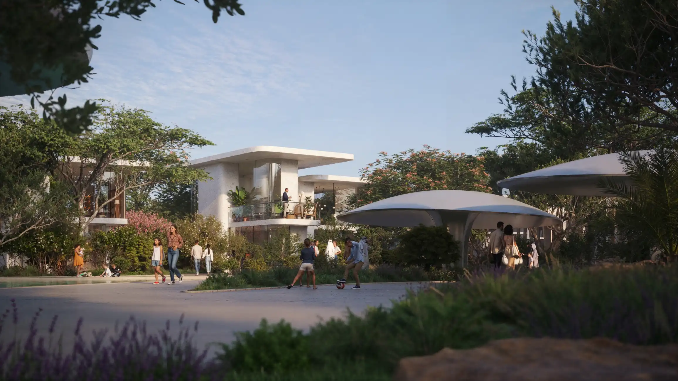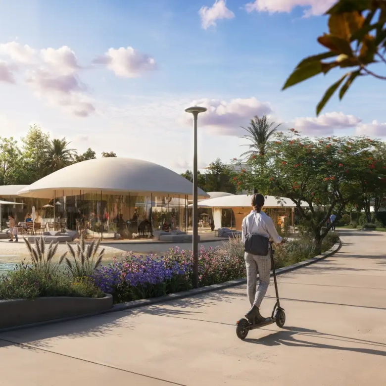 People-first planning: parks, wellness hubs, shaded promenades, family amenities.