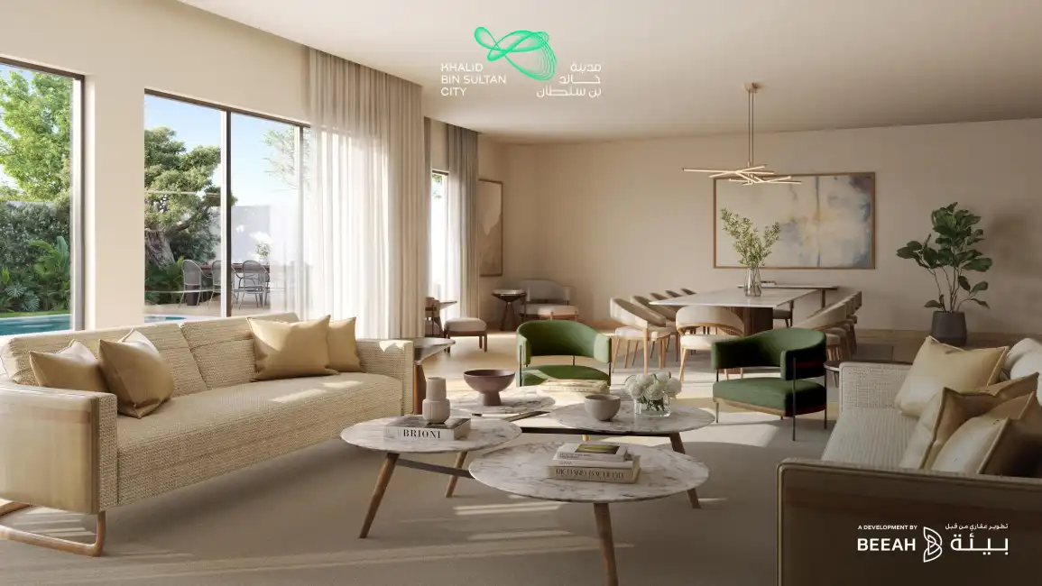 Khalid Bin Sultan City is a next-generation, net-zero-ready master community in Rodhat Al Sidr, Sharjah — developed by BEEAH Group with a visionary concept masterplan by Zaha Hadid Architects and residences designed by Tariq Khayyat Design Partners. Positioned between Al Dhaid Road and Khorfakkan Road, the community connects effortlessly to all Emirates while providing a tranquil, future-focused lifestyle.