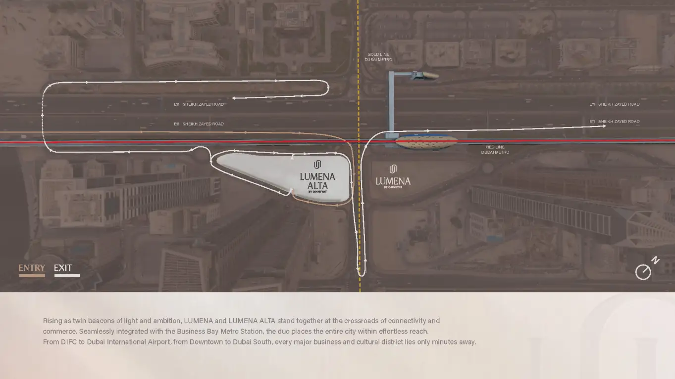 Lumena Alta is positioned at the entrance of Business Bay, with immediate access to Sheikh Zayed Road, minutes to DIFC and Downtown, and convenient proximity to Business Bay Metro and future Gold Line connections.