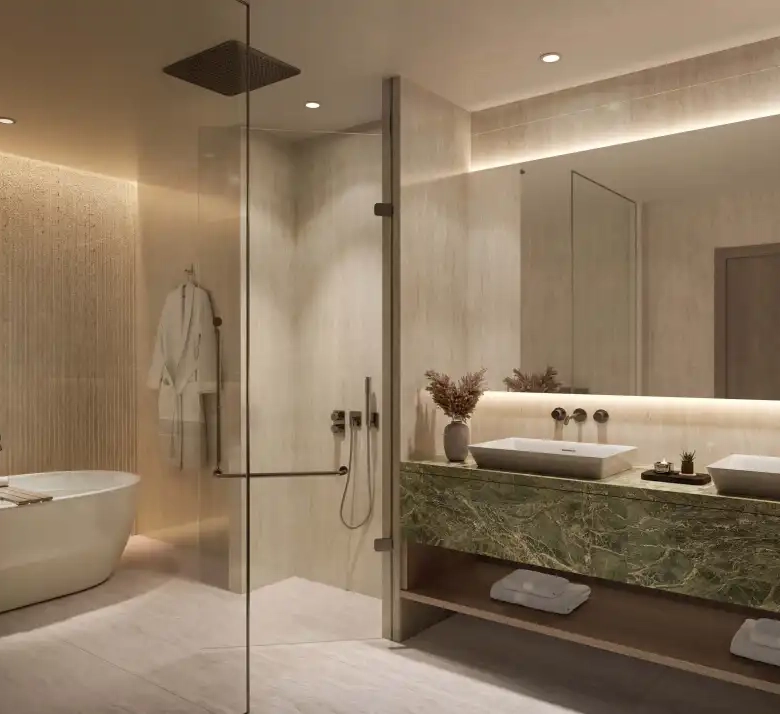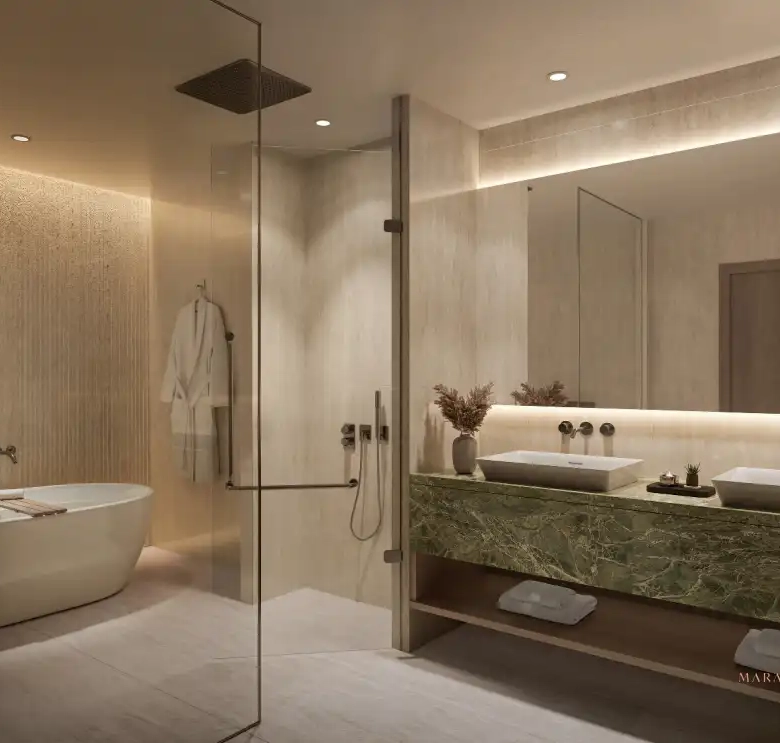 Each home in Maravelle combines natural textures with contemporary elegance. Furthermore, the interiors are designed for wellbeing, emphasizing light, calm, and clean air through low-toxin materials and smart home features.