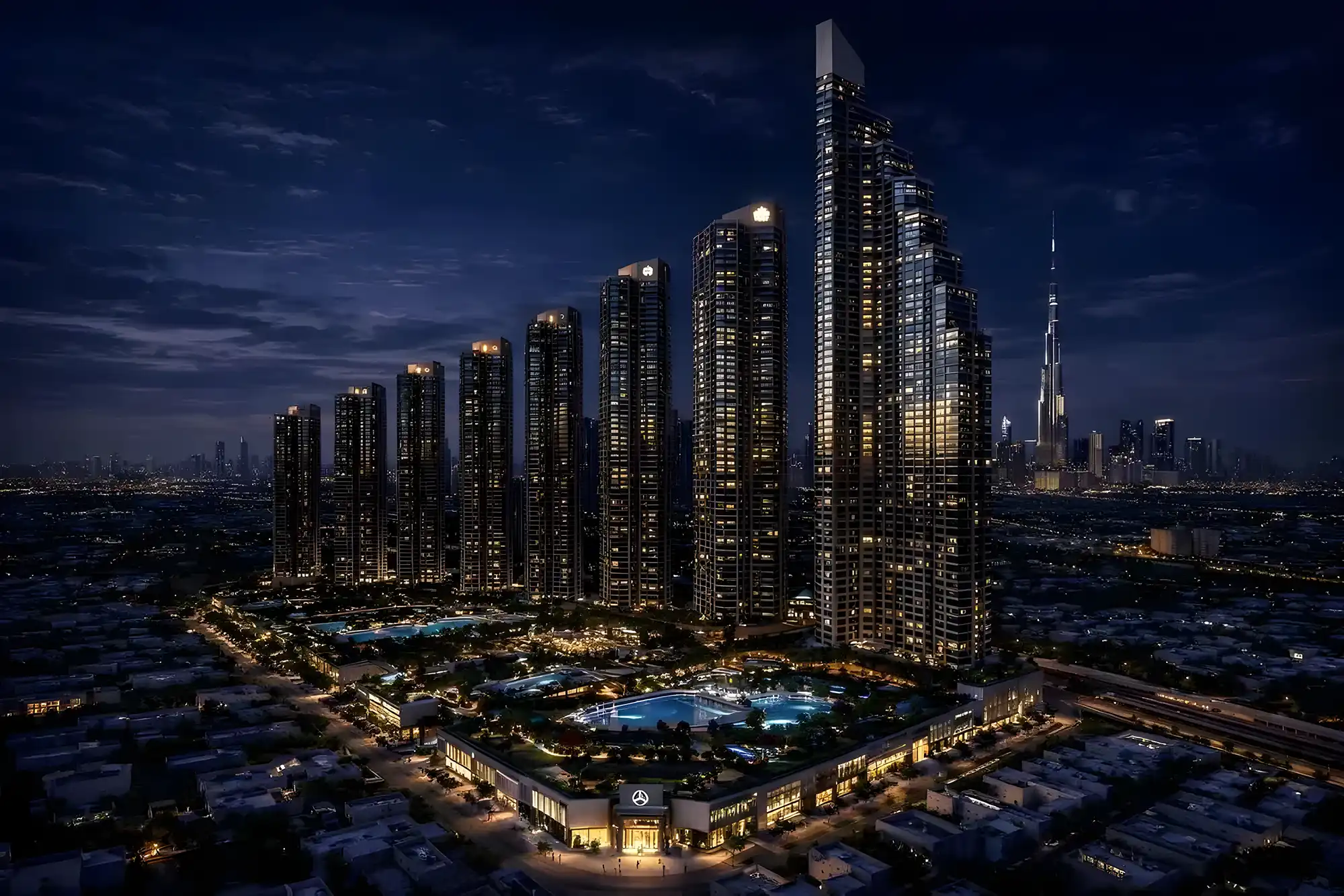 Mercedes-Benz Places — Binghatti City is a landmark off-plan residential project developed by Binghatti, located in Meydan, Dubai. The project represents the world’s first Mercedes-Benz branded residential community, offering studios, apartments, and ultra-luxury penthouses within a master-planned environment.