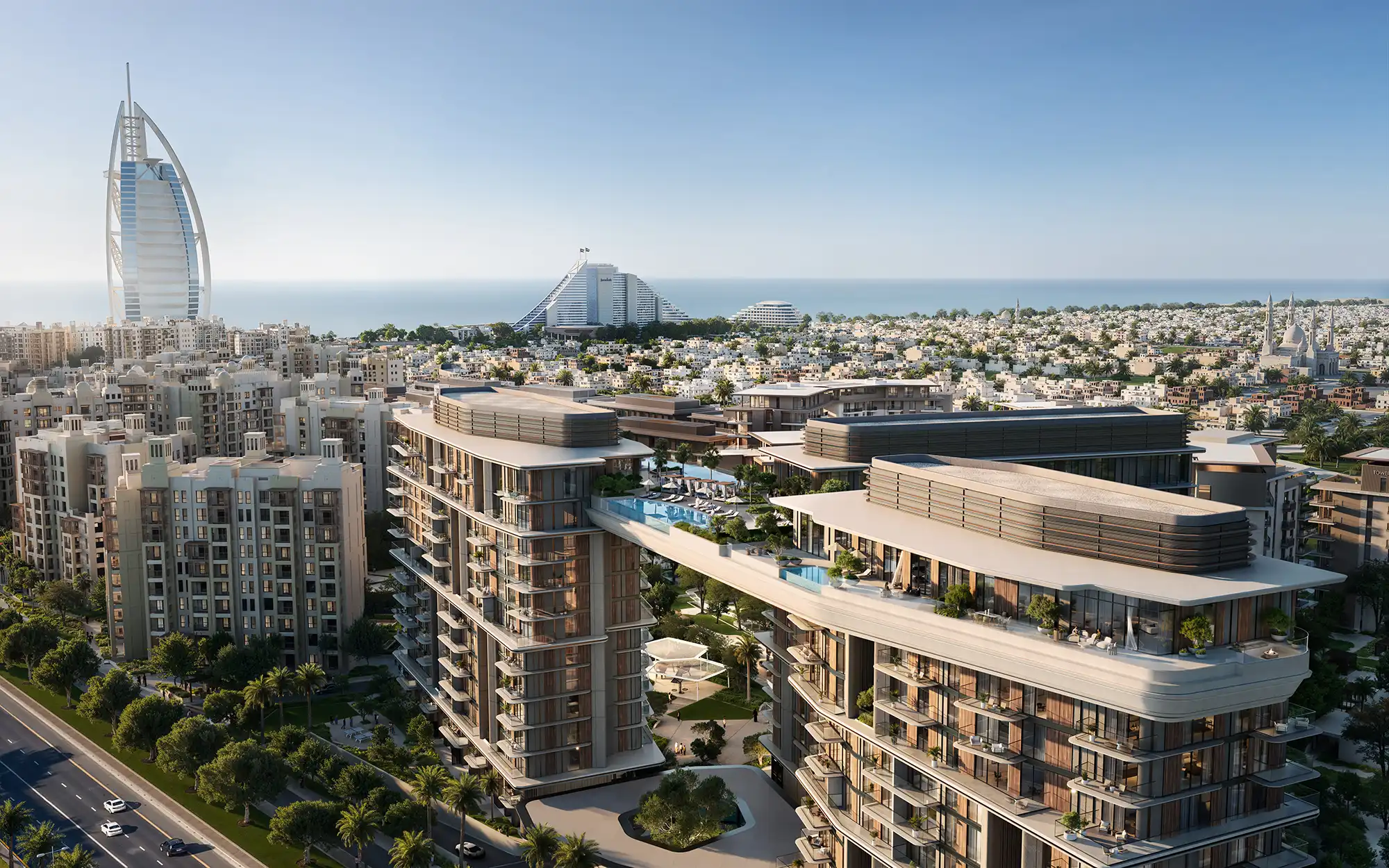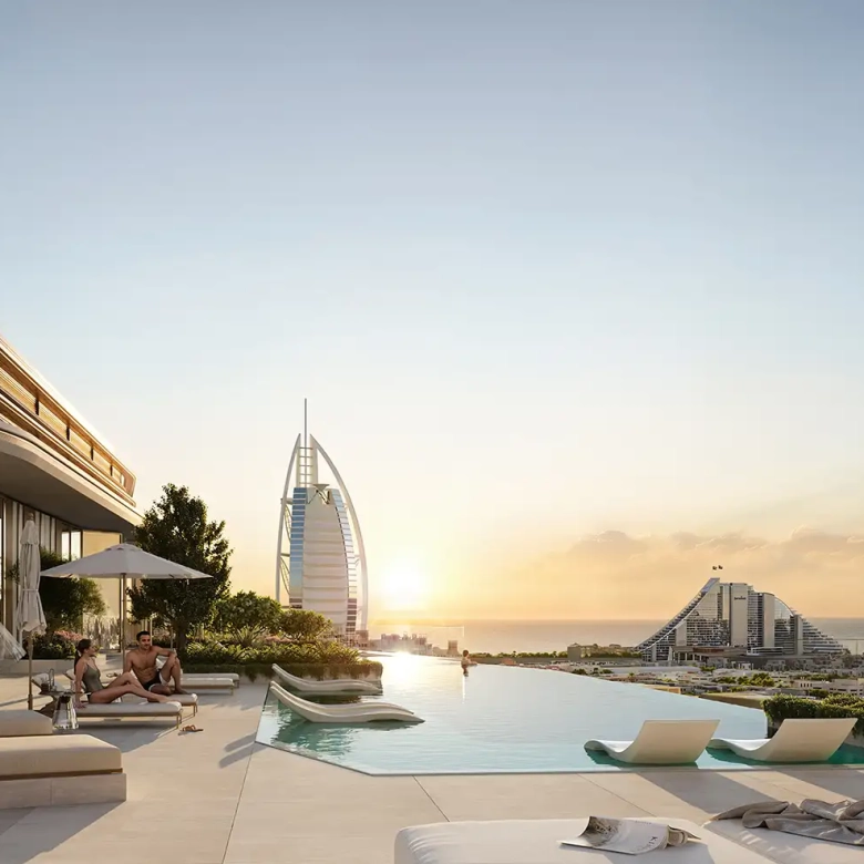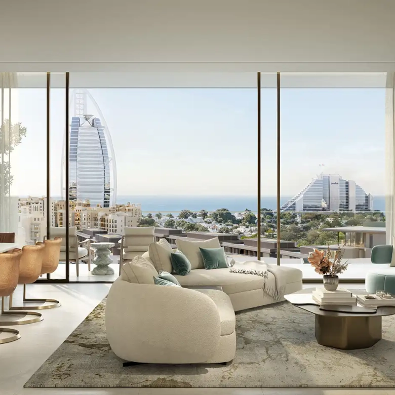 - Spacious balconies and terraces overlooking Burj Al Arab and the sea