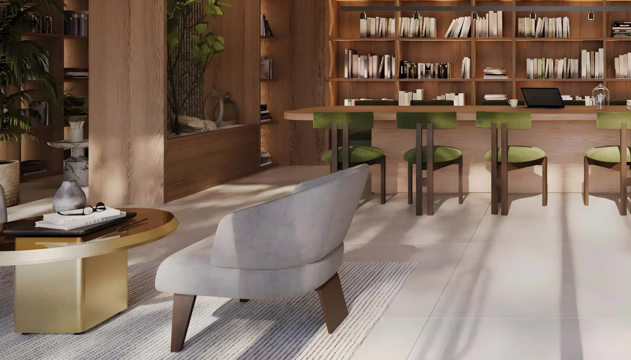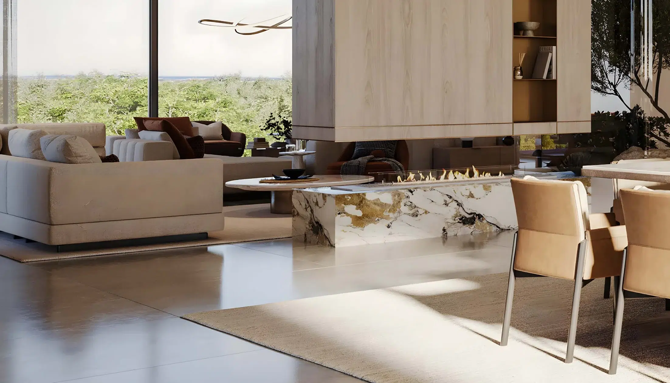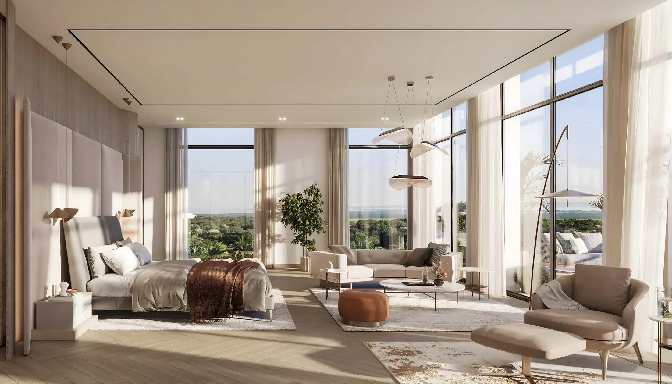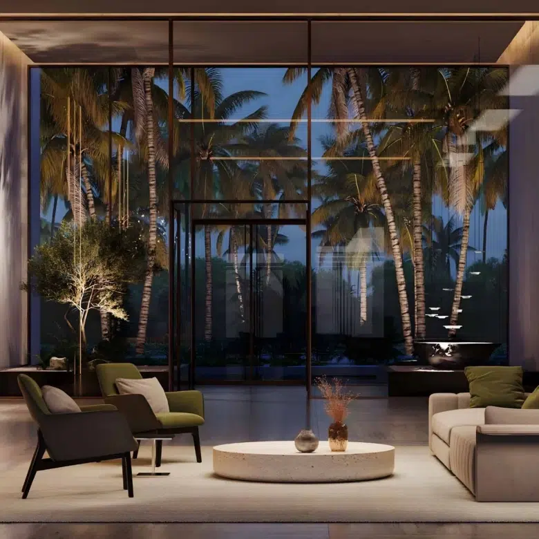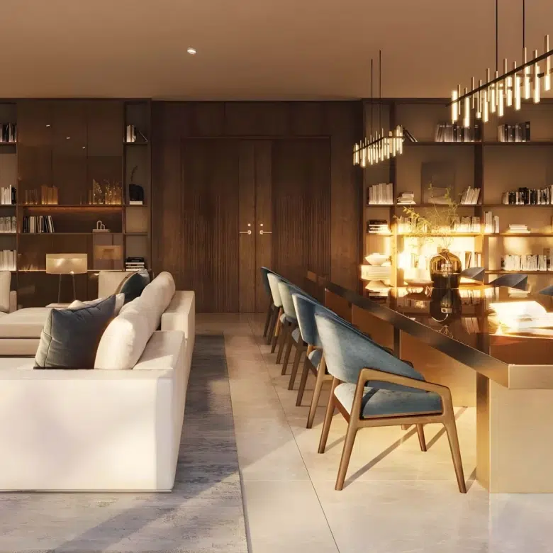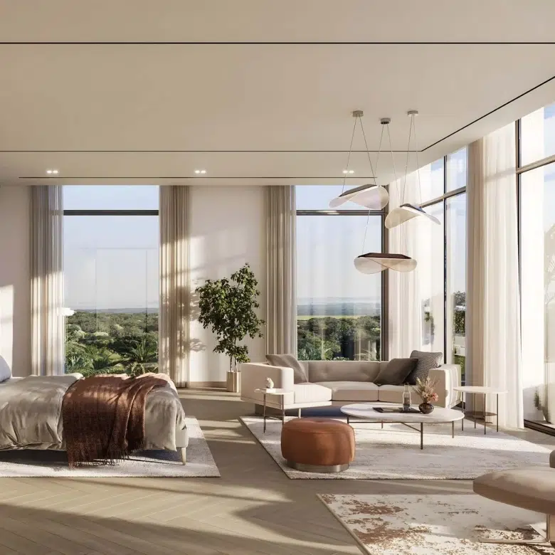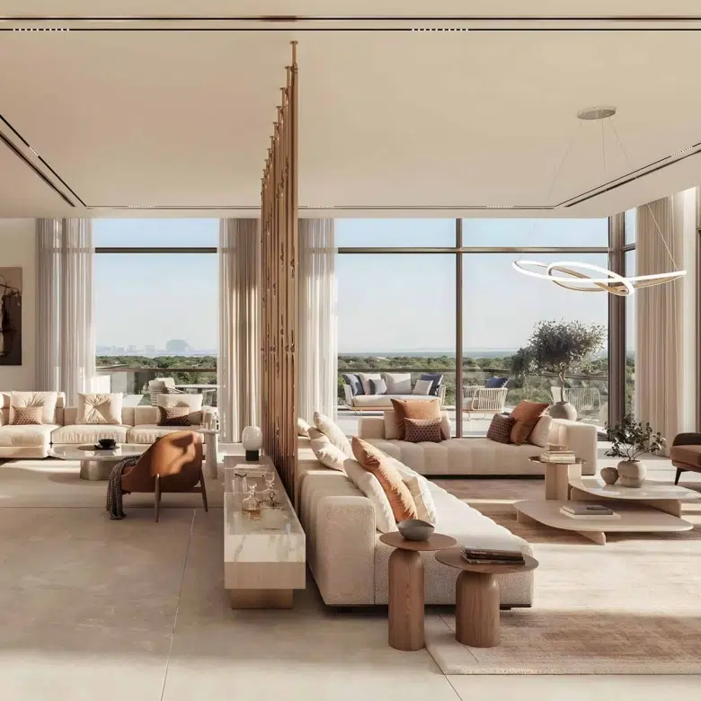 The design vision behind Sama Yas is rooted in sustainability and artistry. The collaboration between Woods Bagot and Mustard & Linen ensures that every space exudes warmth, balance, and sophistication. Expansive balconies and floor-to-ceiling glazing allow residents to enjoy park and water views while maintaining privacy and serenity.