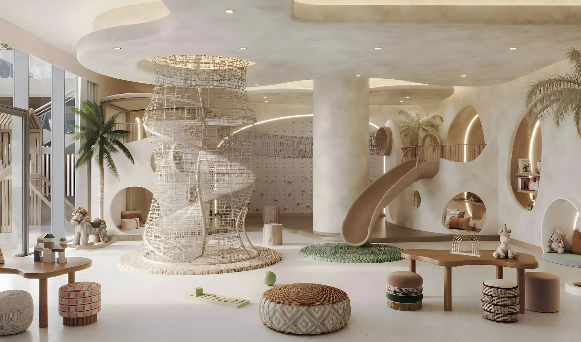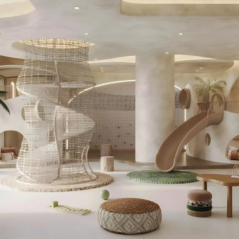 Soto Grande features pools, fitness and yoga studios, kids’ zones, beach access, games rooms, lounges, and landscaped gardens.