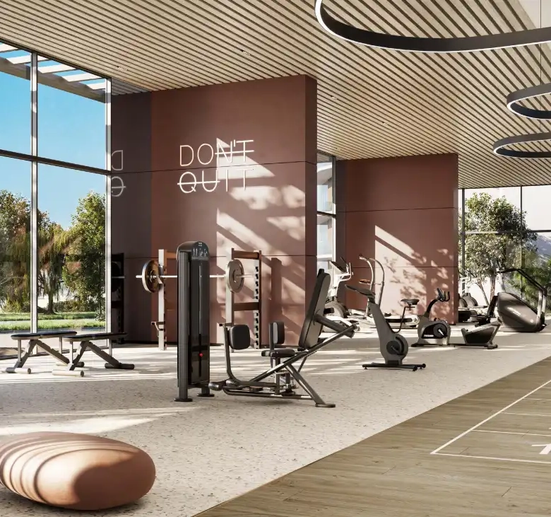 - Indoor/outdoor gym, yoga and wellness studios, padel court