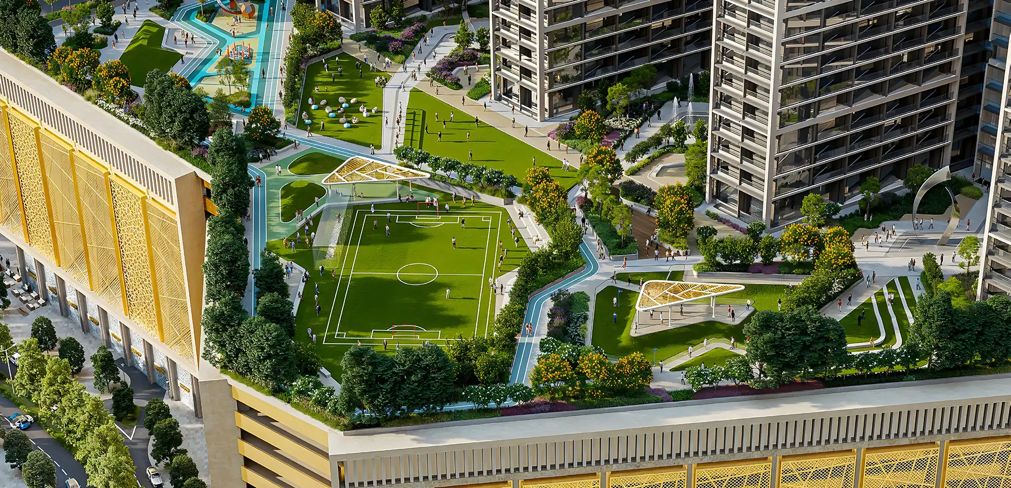 The development offers a wide range of lifestyle amenities including children’s and leisure pools, jacuzzis, jogging tracks, and a calisthenic gym. Furthermore, residents enjoy football and cricket facilities, mini putt-putt, climbing walls, open activity lawns, BBQ areas, and an outdoor cinema.