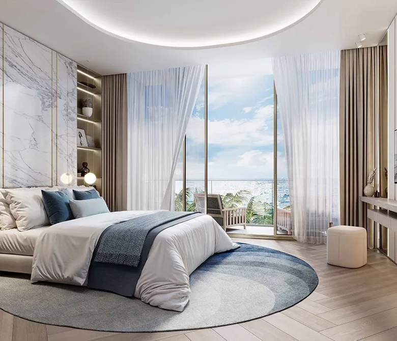 The apartments offer a harmonious blend of modernity and softness, where curved lines, natural daylight, and refined material palettes create a relaxing atmosphere. Additionally, every residence is shaped to enhance both comfort and aesthetic appeal.