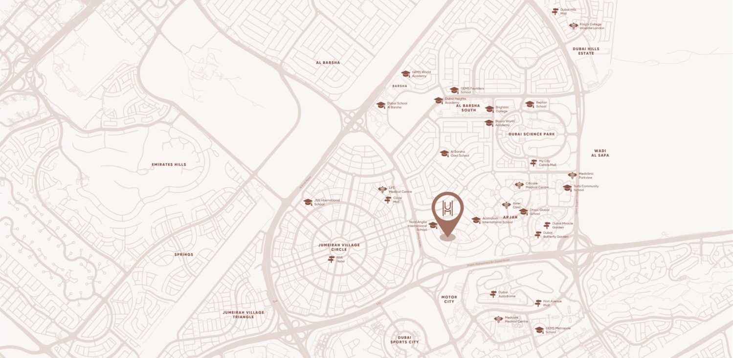 Urban Horizon by Arete is located in Arjan, a rapidly developing community within Dubailand that is known for its family-friendly character and strong road connectivity. The area is close to Sheikh Mohammed Bin Zayed Road, which links residents to key destinations across Dubai with ease. In addition, popular landmarks such as Dubai Miracle Garden and Dubai Butterfly Garden are nearby, reinforcing Arjan’s appeal as a lifestyle-focused neighbourhood.